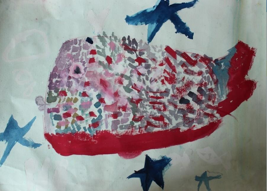 紫峰峰第二天了,如果可以,我还真真想多点时间陪伴孩子们!因为,通过两天的相处,我已经发现了班上的一些比较内向的同学、一些“特别”的孩子了,我想多用点时间陪伴他们身边,带给他们内心色彩、带给他们内心真正的快乐、带领他们走出心里的框框...他是一个叫做“云天”的小男孩,相比起其他孩子,他是班上最安静的,没出过声。上课的时候一直都是静静的、默默的画着,我很快的注意到了他,比起其他同学,我给予了他更多一点点的关心,一开始,无论我怎么问他,他都是不搭理我的,但是第二天早上开始,我问他,他用极其简短的语句回答我了!!!我当时内心,哭了!感动!然后到了下午,他也渐渐的再我脸上露出了笑容...然后今天下午他的画,也比起之前的,开阔了很多!就图片上那幅画,是今天下午全班里我最最喜欢的一幅画了!!!真心想把他装裱起来!最后,通过和班里进行有趣的教学和有趣的游戏,我相信孩子们会越来越强大的!我们会越来越强大的!感谢立邦给了我这次支教的机会!无尽感激!