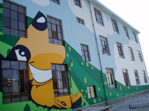 为爱上色˙在彩色小学背后的故事 Q到不行的刀刀狗躺在草地上悠闲地望着天空发呆,此刻的你是不是也想这么享受生活呢? 来自中国漫画家-慕容引刀特别为为爱上色设计的刀刀狗 咦?这不是上图中的刀刀狗嘛?怎么跑到外墙上去了?你是不是很好奇呢?那就跟随小编的步伐一起来看个究竟吧! 原来上图中显示的外墙是四川宜宾小学的教学楼外墙,2011年“为爱上色”的团队来到了这里,为这里的校园涂刷充满童趣的刀刀狗图案, 给这里的孩子们带去了色彩、欢笑~ “为爱上色”在中国已经五年了,立邦为中国偏远山区学校涂刷了近180所的彩色小学。有些小学是贵州苗族黑黑苗寨中的一道彩色风景,也有远到西藏南木乡的刀刀狗创作。这些超过百幅已上墙的墙画,其实是过去五年来,为爱上色每年在线征求的作品,每年都有近千名的网友、设计师、立邦员工拿起画笔,尝试发挥爱心,一笔一笔创作。在创作後经过网络票选,在经过繁复的设计过程成为3D图片,由立邦油工师傅在大面的外墙上,拿起刷子在孩子放暑假时悄悄完成,给孩子一个开学惊喜。 现在就让我们来回顾一下,有哪些有趣的作品上墙了。 首先是,来自网友们的爱心创作,纷纷在中国24个省中缤纷绽放~ 以下几幅来自漫画家的墙画设计和实际涂刷上墙效果,是不是非常趣味盎然呢? 2011年黑龙江娃哈哈希望小学-取材来自 台湾插画家阿丁作品 2013年安徽黄山歙县三星Anycall希望小学-取材来自 台湾插画家Kelly Wu作品 2013年安徽庐江上海建工希望小学--取材来自 台湾插画家Kelly Wu作品 感谢曾经的你们,拿起手中的画笔,用满满的爱心涂鸦创造,挥洒多种色彩,让孩子们拥有绚烂的彩色校园,让孩子们拥有更纯真的笑容,给他们更好的明天。让我们一起来回顾这五年来的美好的墙画设计作品,也欢迎大家分享这些画作给更多的亲朋好友,让爱的色彩,温暖世界每一个角落。 2014年,为爱上色邀请立邦员工,为爱上色合作企业,美术学院,以及更多艺术家参与墙画设计创作,期待更多的人用画笔为偏远地区的孩子带去更多色彩和希望。也期待更多让人惊喜的创意和设计让我们耳目一新...... Tips:想了解更多关于为爱上色的墙画作品,可点以下链接查看。 http://www.colorwayoflove.com.cn/thsj/work.jsp