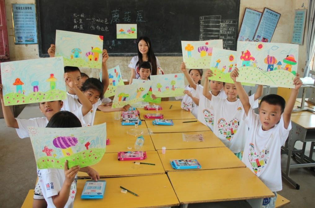 这一次我教的是3年级,他们都非常聪明乖巧,跟他们相处我真的很开心。 我们今天画的主题是“蘑菇屋”首先跟他们讲解了一些关于的颜色理论,“对比色”与“邻近色”的运用。 瞧我们班的小帅哥小美女们的大作,第一天大家表现得真的很不错。看到你们完成之后都露出灿烂的笑容,就觉得非常值得。 “爱的色彩队”加油!敏仪与你同在。